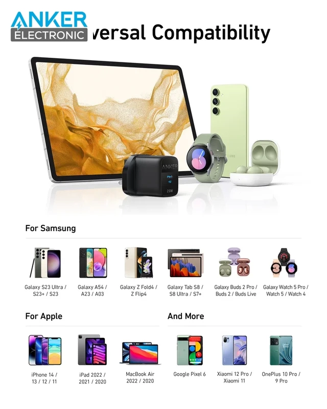شارژر انکر مدل 312 از برند خوب و باکیفیت Anker با کد شناسه A2642 گزینهی بسیار مناسب و خوبی برای شارژ انواع گوشیهای پرچمدار، مخصوصا برای سامسونگ به حساب میآید، اگر دارای گوشیهای سری گلکسی S23 از شرکت سامسونگ باشید، این شارژر بینظیر در کمتر از 1.5 ساعت گوشی شما را شارژ میکند.