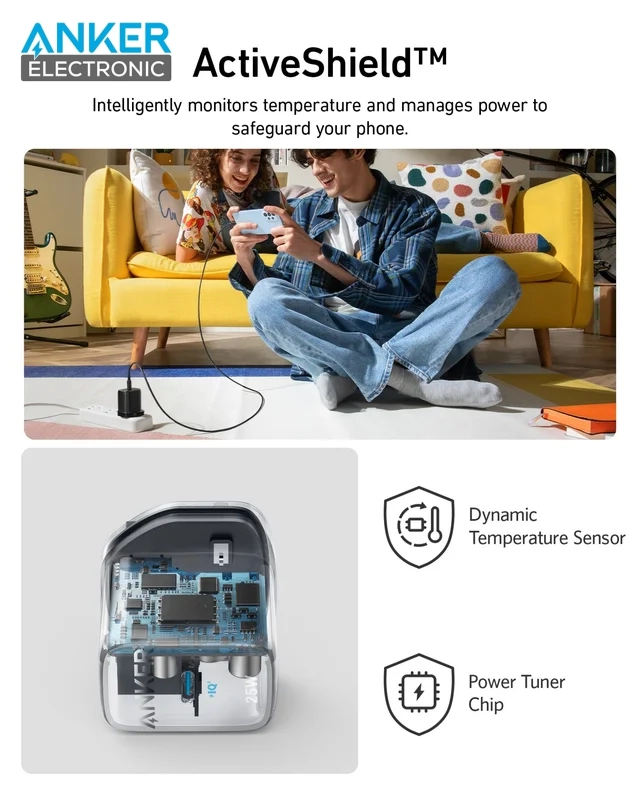- فناوری ایمنی چندگانه: شارژر انکر 312 دارای فناوری ایمنی چندگانه است که از دستگاههای شما در برابر آسیب محافظت می کند.