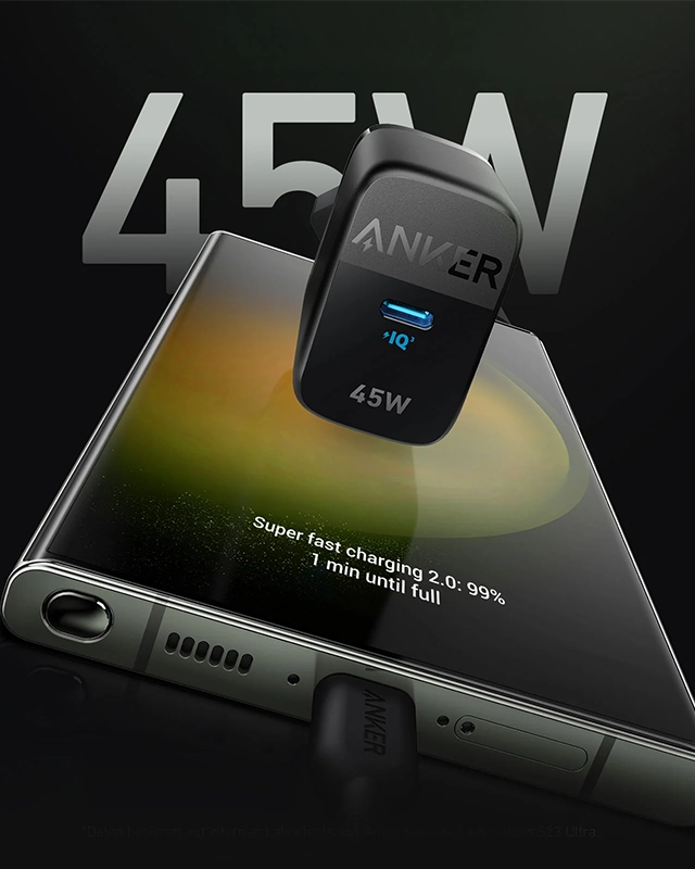 شارژر انکر مدل 313 با شناسه A2643 گزینه‌ی بسیار مناسبی برای شارژ تمامی گوشی‌های پرچمدار می‌باشد، به‌ویژه اگر دارای گوشی‌های سری گلکسی S۲۳ از شرکت سامسونگ باشید. با استفاده از این آداپتور، می‌توانید گوشی خود را با سرعت بیشینه شارژ نمایید. اگر به دنبال آداپتوری با توان ۴۵ وات و از تولید کننده‌ای متفاوت از سازنده گوشی‌تان هستید، توصیه می‌کنیم این آداپتور را در نظر بگیرید.