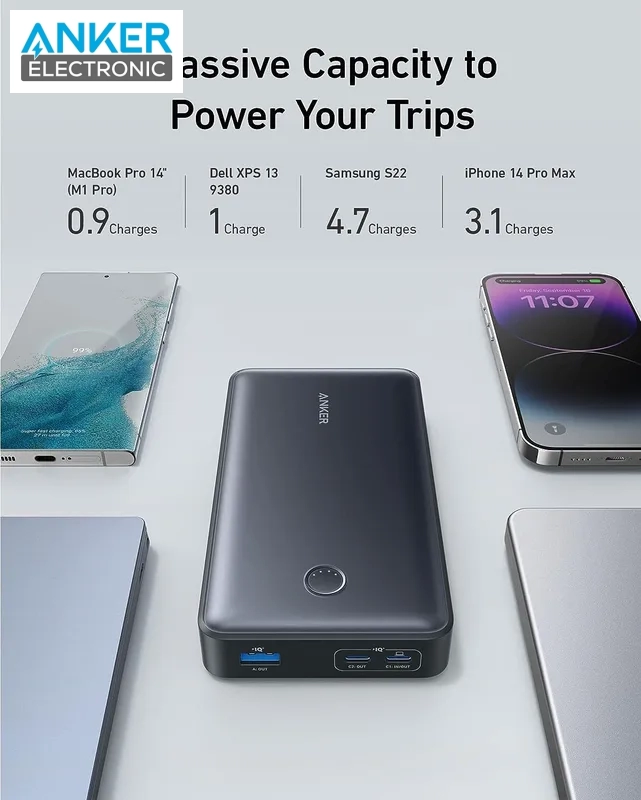 پاوربانک 24000 میلی آمپر انکر Anker 537 (PowerCore 24K برای دستگاههای قوی) یک پاوربانک با ظرفیت بالا است که میتواند طیف وسیعی از دستگاهها را شارژ کند، از جمله لپتاپها، گوشیهای هوشمند، تبلتها و موارد دیگر. ظرفیت آن 24000 میلیآمپر ساعت است که برای شارژ یک مکبوک پرو حدود 0.9 بار یا یک آیفون 13 پرو حدود 4.8 بار کافی است.
