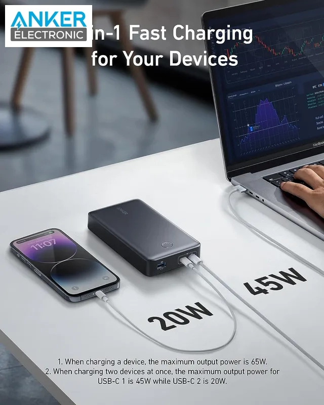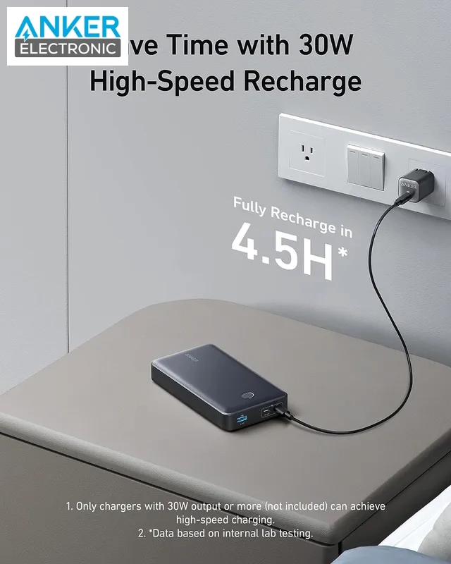 - مجهز به فناوری Anker’s PIQ 3.0 (PD+QC)
