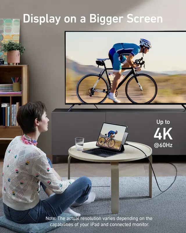 • صفحه نمایش بزرگ‌تر، تجربه بهتر: با اتصال آیپد به یک نمایشگر خارجی با رزولوشن تا 4K، می‌توانید از کار با برنامه‌های گرافیکی، تماشای فیلم‌ها و ارائه‌های کاری با کیفیت بسیار بالا لذت ببرید.