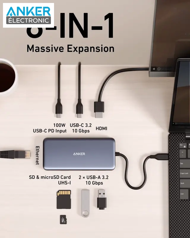 هاب دیتا 8 در 1 انکر Anker 555 USB C Hub 8-in-1 A8383
