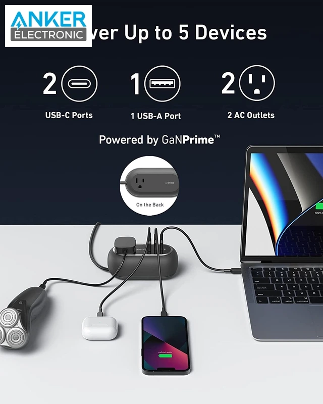 چندراهی برق 5 پورت انکر Anker 615 USB Power Strip GaNPrime 65W A9125