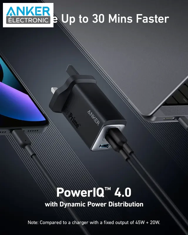 Anker 735 با پشتیبانی از PowerIQ 4.0، میتواند دستگاههای شما را با حداکثر سرعت 65 وات شارژ کند. این سرعت به شما امکان میدهد لپتاپ خود را در عرض 30 دقیقه تا 50 درصد شارژ کنید.