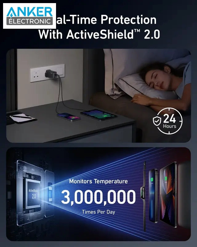 علاوه بر مزایای ذکر شده در بالا، Anker 735 دارای گواهینامههای ایمنی متعددی از جمله UL، CE، FCC و RoHS است. این گواهینامهها نشان میدهند که این شارژر برای استفاده ایمن و قابل اعتماد تست شده است.