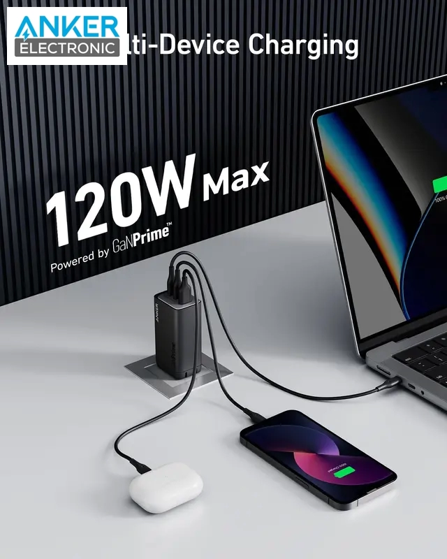 انکر 737 با بهرهگیری از فناوری پیشرفته GaNPrime، استانداردهای شارژرهای سریع را به سطح جدیدی ارتقا داده است. این شارژر کوچک و قدرتمند، با توان خروجی 120 وات، قادر است تا چندین دستگاه الکترونیکی را به طور همزمان و با سرعت بسیار بالا شارژ کند. دیگر نیازی نیست ساعتها منتظر بمانید تا گوشی هوشمند، تبلت یا لپتاپ شما شارژ شود.