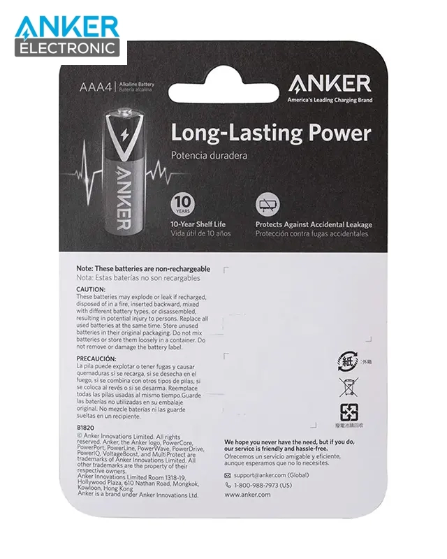 باتری نیم قلمی 1.5 ولت انکر Anker Batteries Alkaline AAA 4-pack B1820H12