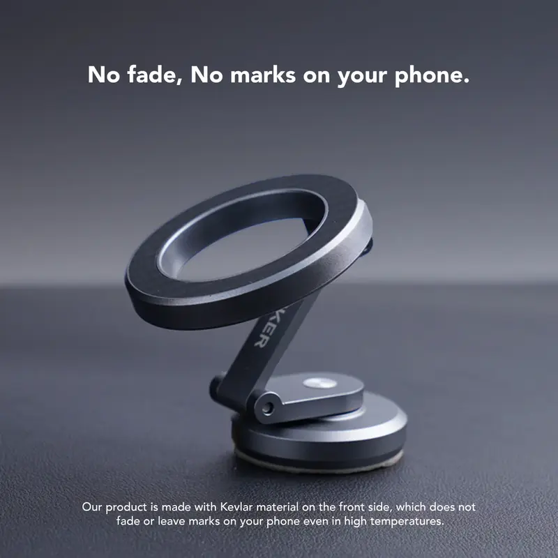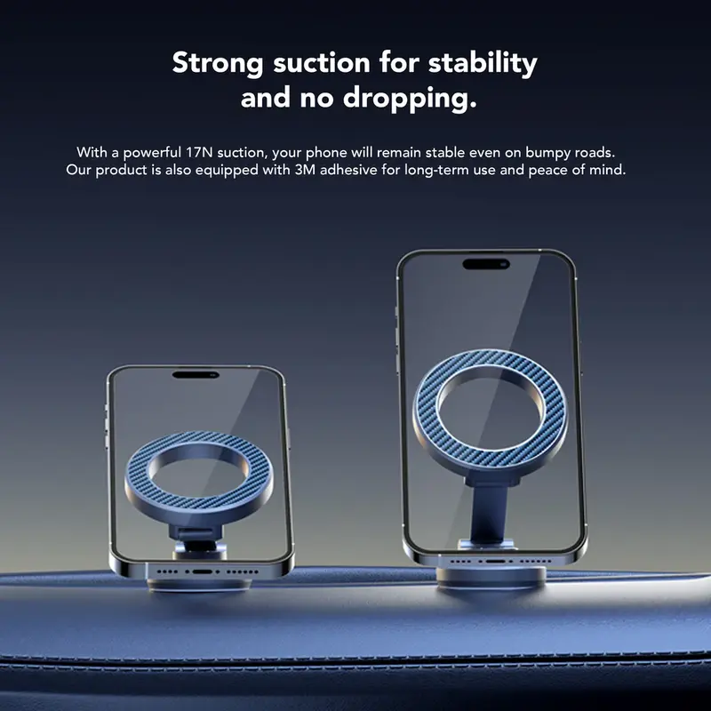 - مغناطیس قدرتمند: نیروی مغناطیسی قوی، گوشی شما را محکم در جای خود نگه میدارد و از افتادن آن در حین رانندگی جلوگیری میکند.