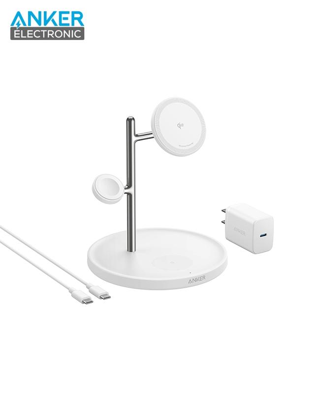 Anker MagGo Wireless Charging Station (3-in-1 Stand)، شارژ بی‌سیم، شارژ 3 دستگاه به طور همزمان، MagSafe، شارژ سریع، Apple Watch، AirPods، طراحی ارگونومیک، ایمن، قیمت مناسب