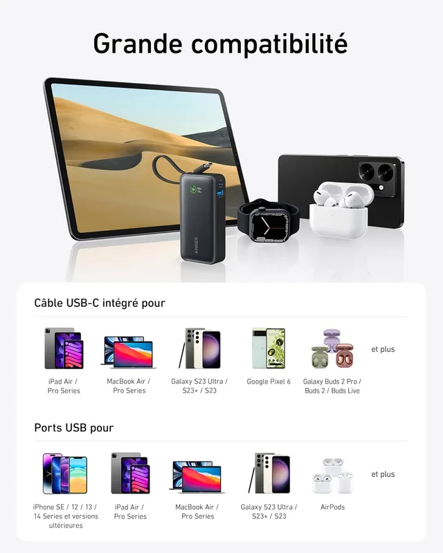 - شارژ سریع و آسان: با استفاده از کابل USB-C داخلی، به سرعت دستگاههای خود را شارژ کنید.