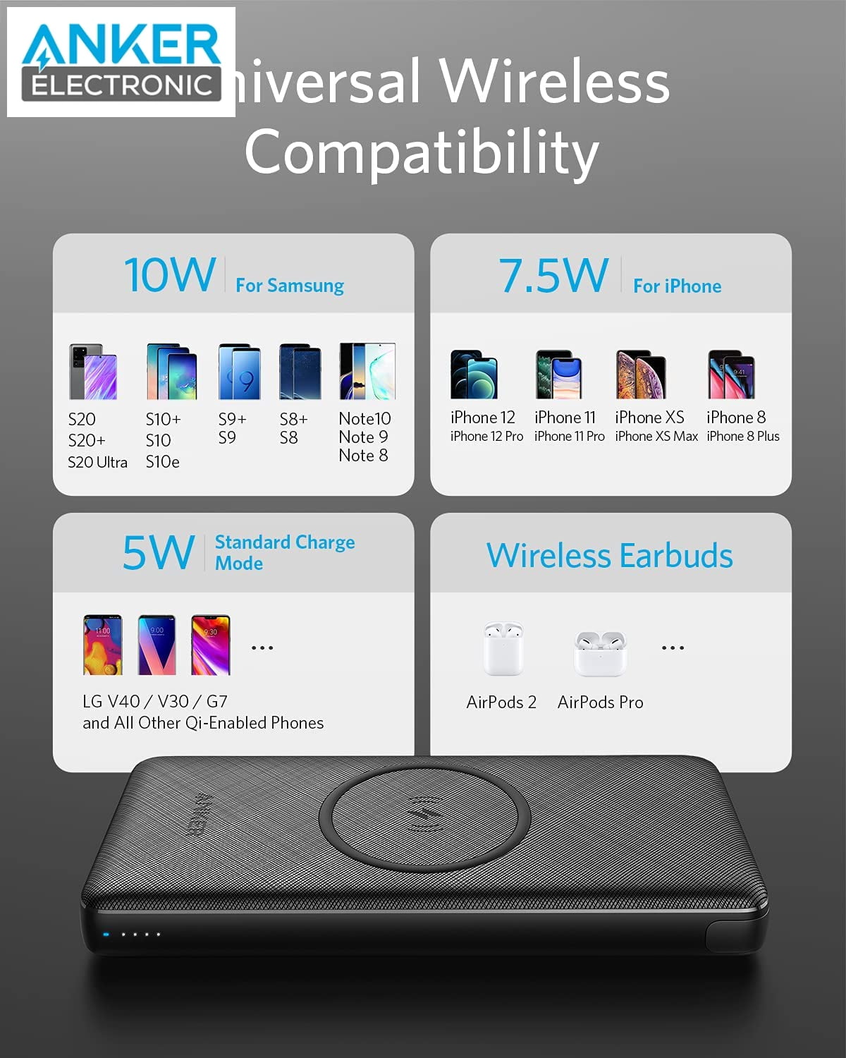 پاوربانک وایرلس 10000 میلی آمپر انکر Anker PowerCore III Sense 10K Wireless A1617 بدنه پارچه ای
