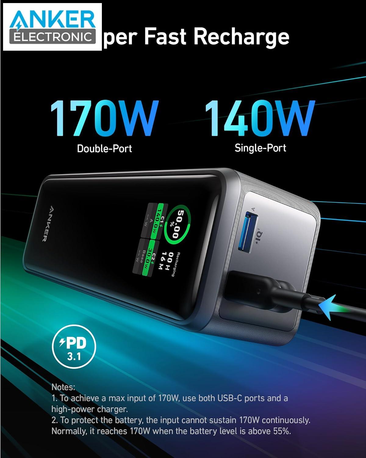 پاوربانک، انکر، 250 وات، 27,650 میلیآمپر ساعت، شارژ سریع، Power Delivery 3.0، Quick Charge 4.0، ایمن، قابل حمل، لپتاپ، گوشی هوشمند، تبلت، USB-C، سفر، کمپینگ
