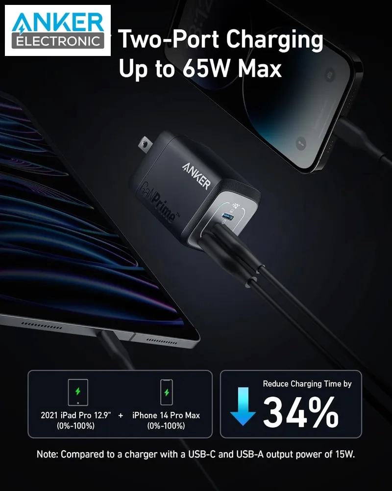 شارژر دیواری 67 وات انکر شارژر سریع و قابل حمل است که برای گوشیهای هوشمند، تبلتها و سایر دستگاههای USB-C طراحی شده است. این شارژر از فناوری PowerIQ 4.0 استفاده میکند تا دستگاههای شما را با سرعتی ایمن و کارآمد شارژ کند.