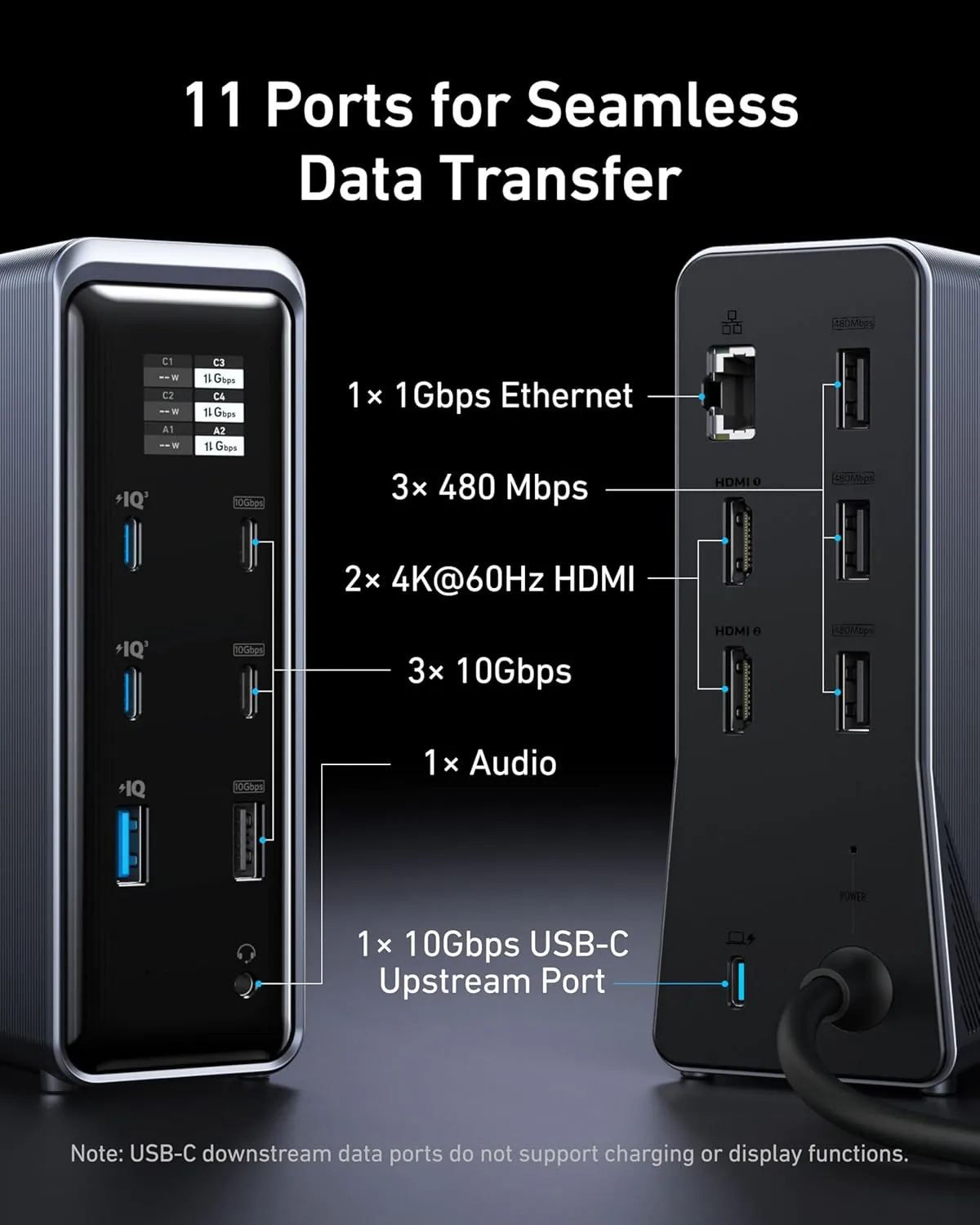 • انکر معمولاً از فناوری‌های اختصاصی مثل PowerIQ در کنار USB 3.1 Gen 2 استفاده می‌کند تا شارژ و انتقال داده به‌صورت بهینه و ایمن انجام شود. این یعنی حتی وقتی چندین دستگاه به داک متصل هستند، سرعت و عملکرد افت نمی‌کند.