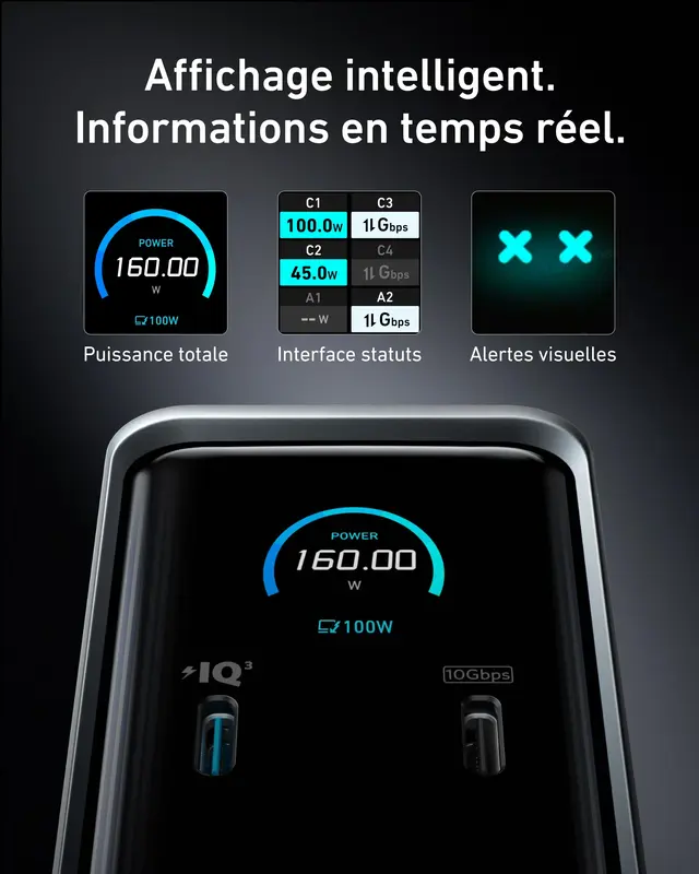 یکی از نقاط قوت این محصول، توان خروجی 160 وات آن است. این میزان توان به کاربران اجازه می‌دهد لپ‌تاپ‌های پرمصرف مانند مک‌بوک پرو 16 اینچی، سرفیس بوک یا حتی برخی لپ‌تاپ‌های گیمینگ را با سرعت بالا شارژ کنند. حتی در حالتی که چندین دستگاه به‌طور همزمان متصل باشند، سیستم مدیریت هوشمند توان انکر تضمین می‌کند که شارژ بهینه به هر دستگاه اختصاص یابد.