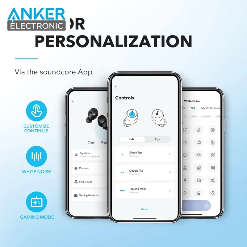 - برنامه SoundCore: این برنامه به شما امکان میدهد نمایه صدایی را سفارشی کنید، کنترلهای لمسی را کنترل کنید و به به روز رسانیهای نرم افزار دسترسی پیدا کنید.