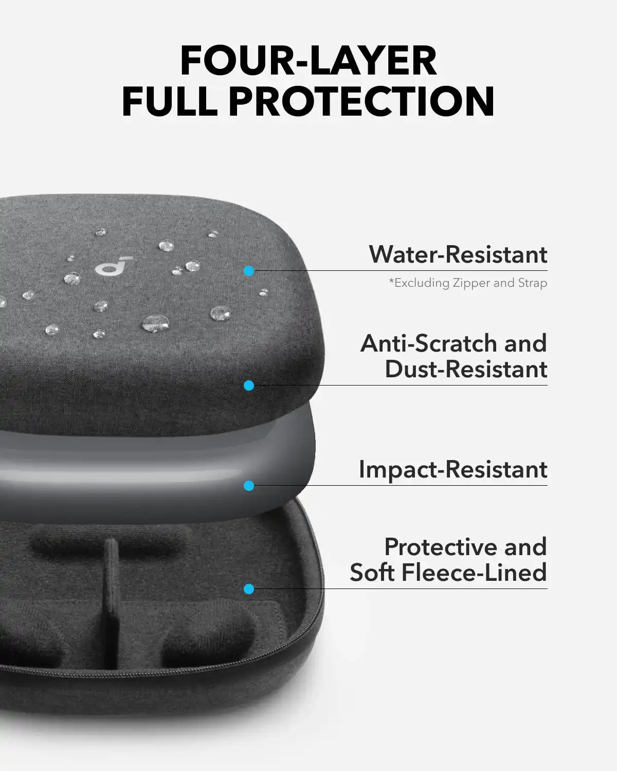 • قالب داخلی اختصاصی: طراحی قالب‌گیری شده در داخل کیف برای نگهداری محکم و ثابت هدفون‌های دور گوش جمع‌شونده (مانند سری Anker Q30/Q35/Q45).