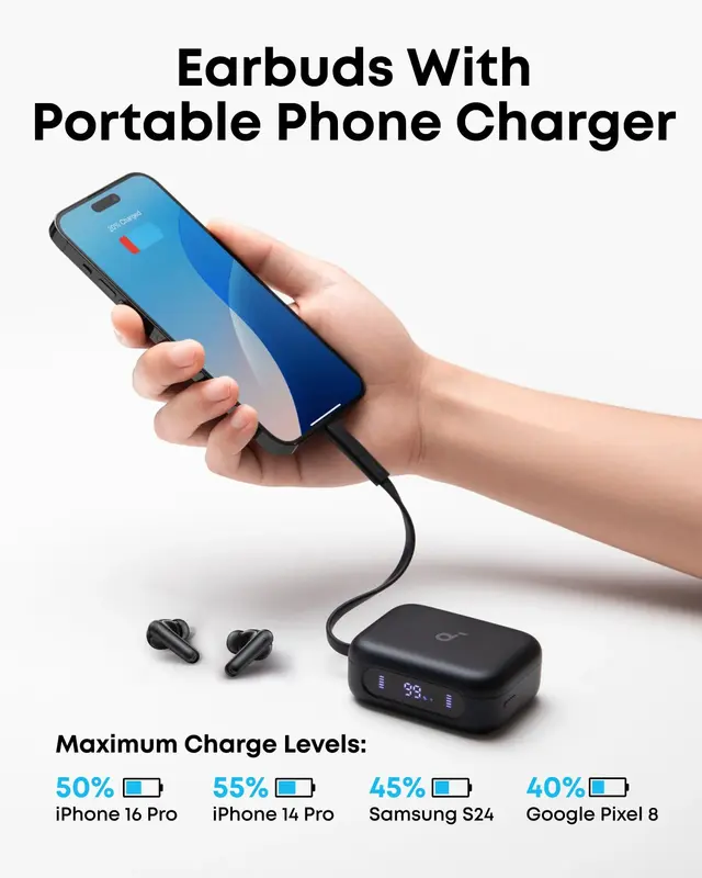 Soundcore P41i تنها یک هدفون نیست، بلکه یک پاوربانک اضطراری نیز هست! با مجهز بودن به یک باتری ۳۰۰۰ میلیآمپر ساعتی در کیس شارژ، این هدفون به شما امکان میدهد تا در مواقع اضطراری، گوشی هوشمند یا سایر دستگاههای کوچک خود را شارژ کنید. این ظرفیت باتری قابل توجه در کیس شارژ، نه تنها شارژدهی فوقالعادهای را برای خود هدفونها به ارمغان میآورد، بلکه میتواند به عنوان یک منبع تغذیه همراه عمل کند و دستگاههایی مانند آیفون ۱۶ پرو را تا حدود ۵۰ درصد و گلکسی S24 را تا حدود ۴۵ درصد شارژ کند. این ویژگی، به ویژه برای مسافرتها، کمپینگ، یا مواقعی که دسترسی به پریز برق ندارید، بسیار کارآمد است. تصور کنید در میانه یک روز کاری یا در سفر، شارژ گوشی شما رو به اتمام است؛ با Soundcore P41i، میتوانید از کیس هدفون خود به عنوان یک پاوربانک کوچک استفاده کرده و عمر باتری دستگاهتان را افزایش دهید. این قابلیت هوشمندانه، نگرانی شما را از تمام شدن شارژ گوشی برطرف میکند و آسودگی خاطر بیشتری را برای شما به ارمغان میآورد. همچنین، این قابلیت، نیاز به حمل یک پاوربانک جداگانه را از بین میبرد و بار شما را سبکتر میکند.