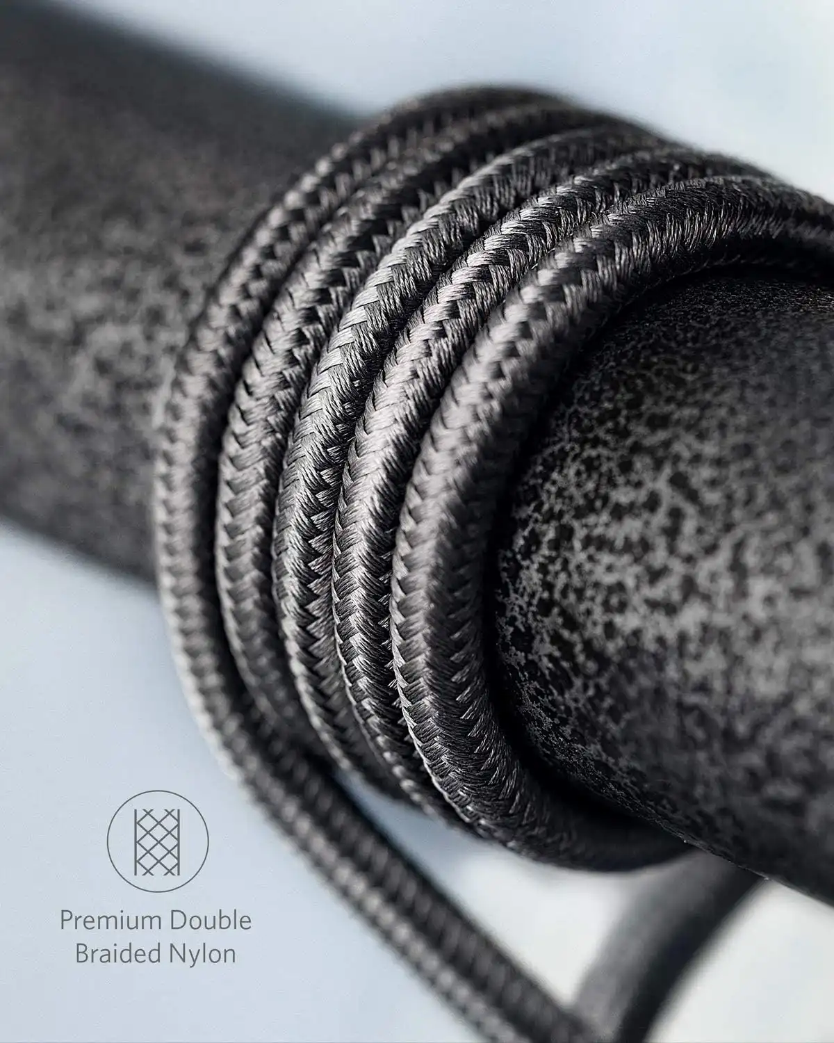 طراحی و مواد اولیه به کار رفته در یک کابل، نقش حیاتی در طول عمر و عملکرد آن ایفا میکنند. کابل Anker A8753 در این زمینه حرفهای زیادی برای گفتن دارد. جنس روکش این کابل از نایلون تنیدهشده با کیفیت بسیار بالا است. این نوع روکش نه تنها ظاهری لوکس و مدرن به کابل میبخشد، بلکه مقاومت آن را در برابر کشیدگی، ساییدگی و گره خوردن به شدت افزایش میدهد. ساختار بافته شده نایلون، یک لایه محافظ محکم و منعطف ایجاد میکند که سیمهای داخلی را از آسیبهای فیزیکی روزمره حفظ میکند. این ویژگی باعث میشود که دیگر نگران پاره شدن یا فرسوده شدن زودهنگام کابل نباشید.