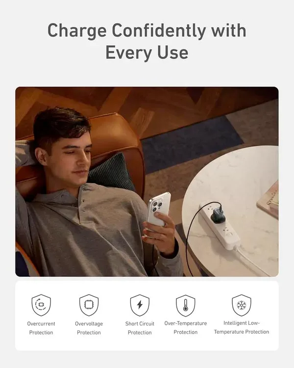 • سیستم ایمنی MultiProtect: Anker همواره بر ایمنی محصولات خود تأکید دارد. این شارژر نیز به سیستم MultiProtect انکر مجهز است که شامل مجموعه‌ای از ویژگی‌های ایمنی مانند حفاظت در برابر ولتاژ بیش از حد، جریان بیش از حد، اتصال کوتاه و کنترل دما است. این ویژگی‌ها اطمینان خاطر بیشتری را برای کاربران فراهم می‌کنند.