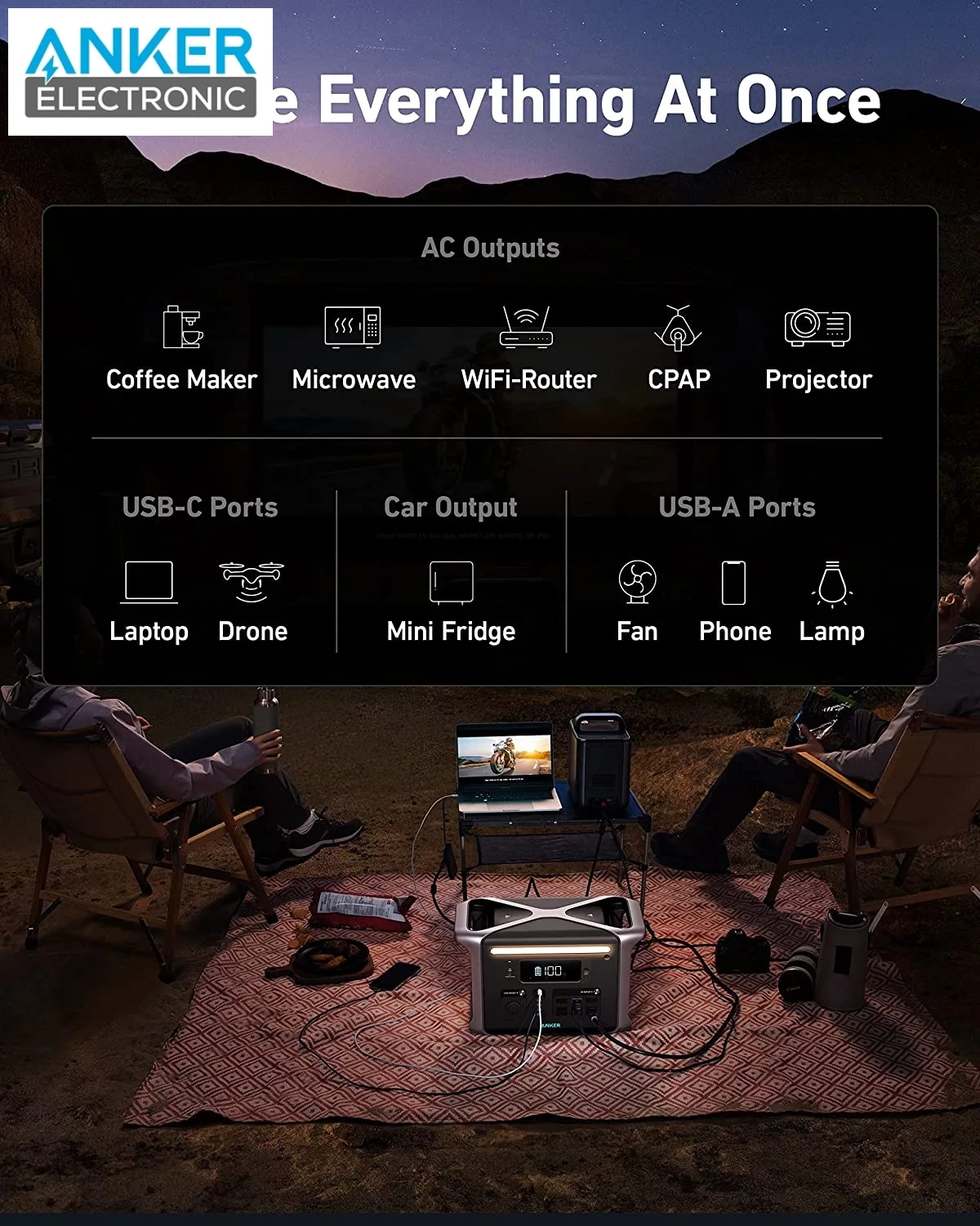 Anker 757 PowerHouse یک نیروگاه قابل حمل با ظرفیت 1229 وات ساعت و توان خروجی 1500 وات است که میتواند برای مصارف مختلف از جمله کمپینگ، سفر، قطعی برق و موارد دیگر استفاده شود. این محصول با عمر باتری طولانی، شارژ سریع و طراحی بادوام، به عنوان یک منبع انرژی قابل اعتماد برای انواع نیازهای شما عمل میکند.