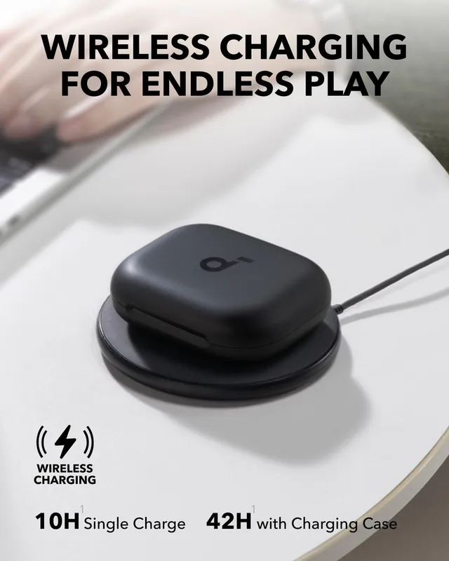 - باتری قدرتمند: با یک بار شارژ کامل، میتوانید تا 10 ساعت به موسیقی گوش دهید و با استفاده از کیس شارژر، این زمان تا 42 ساعت افزایش مییابد.