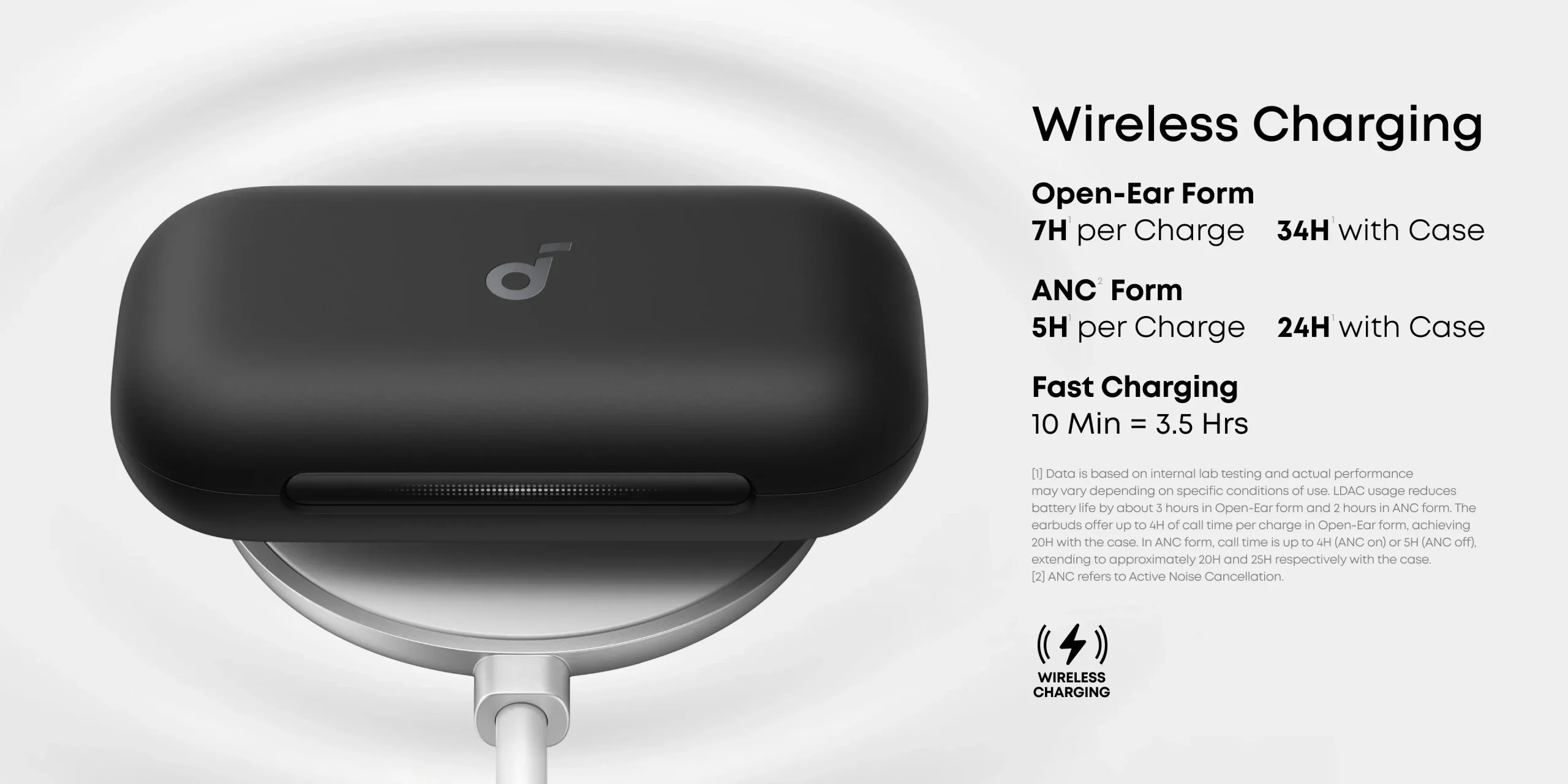 نکته متمایز کننده دیگر، قابلیت شارژ کیس از طریق وایرلس شارژ (Wireless Charging) است. شما میتوانید به سادگی کیس هدفون را روی پد شارژ بیسیم قرار دهید و نیازی به درگیری با کابلهای مختلف نداشته باشید. البته درگاه USB-C نیز برای شارژ سریع با کابل تعبیه شده است. این ترکیب از طول عمر بالای باتری و روشهای متنوع شارژ، Aerofit 2 Pro را به یک همراه وفادار در سفرهای طولانی و روزهای پرمشغله تبدیل کرده است.