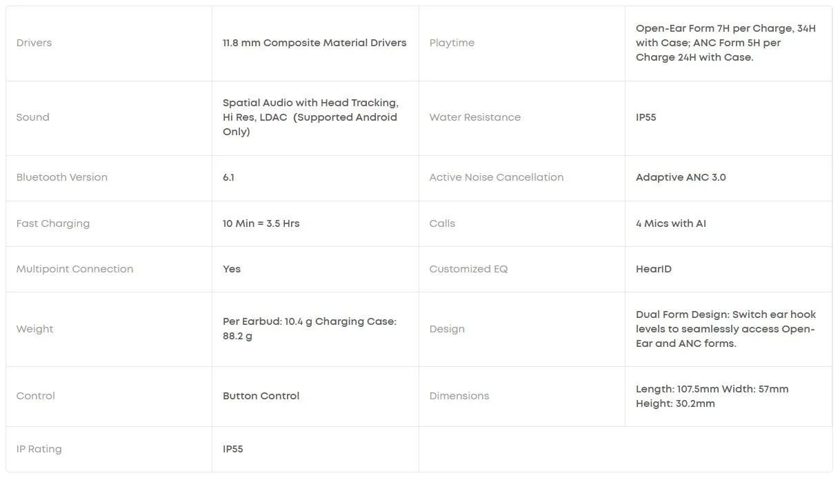 - طراحی دوگانه گوش باز یا حالت اکتیو نویز کنسلینگ