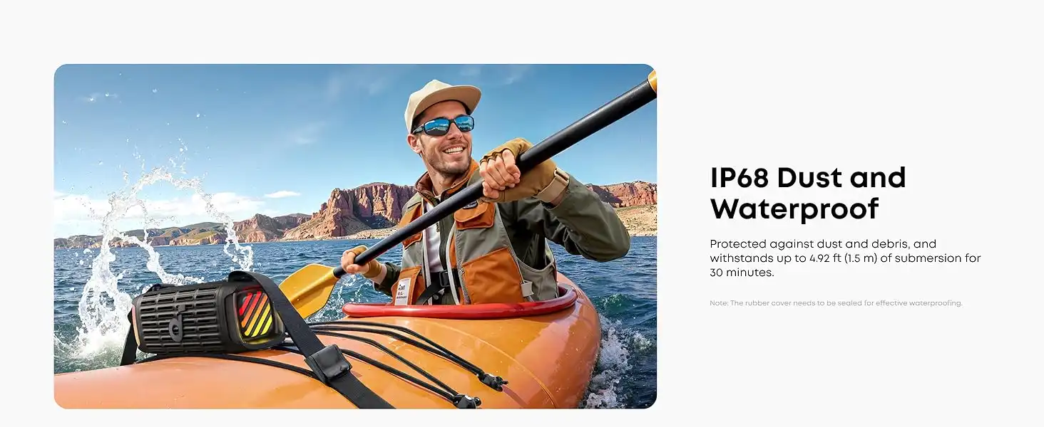 یکی از برجستهترین ویژگیهای انکر ساندکور بوم 3i، مقاومت بینظیر آن در برابر نفوذ آب و گرد و غبار است که با استاندارد IP68 تأیید شده است. این استاندارد به این معناست که اسپیکر نه تنها در برابر پاشش آب یا بارش شدید باران کاملاً مقاوم است، بلکه میتواند تا عمق مشخصی در آب غوطهور شود و همچنان به کار خود ادامه دهد. این قابلیت، آن را برای استفاده در کنار استخر، ساحل، قایقرانی و حمام ایدهآل میسازد، بدون اینکه نگرانی از بابت آسیب دیدن آن وجود داشته باشد.