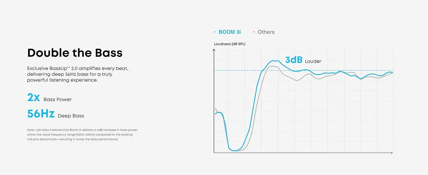 با این ترکیب، توان خروجی حداکثر ۵۰ وات و ۹۶ دسی بل برای اسپیکر فراهم میشود. این توان بالا به آن اجازه میدهد تا فضاهای بزرگ را به راحتی با موسیقی پر کند، که برای مهمانیها در فضای باز یا کمپینگهای بزرگ بسیار مناسب است. مهمتر از حجم صدا، کیفیت باس تولیدی است. انکر از فناوری BassUp 2.0 در این مدل استفاده کرده است که به طور خودکار و در لحظه، فرکانسهای پایین موسیقی را تجزیه و تحلیل و تقویت میکند. نتیجه این فناوری، ۲ برابر بیس قویتر با عمق ۵۶ هرتز است. این عمق باس، کوبندگی و غنای خاصی به موسیقی میبخشد که در اسپیکرهای هماندازه به ندرت یافت میشود و تجربه شنیداری هیجانانگیزی را رقم میزند.